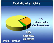 Los últimos estudios epidemiológicos señalan como primera causa de muerte en Chile al grupo de las enfermedades cardiovasculares, con una mortalidad cercana a las 30.000 defunciones al año.